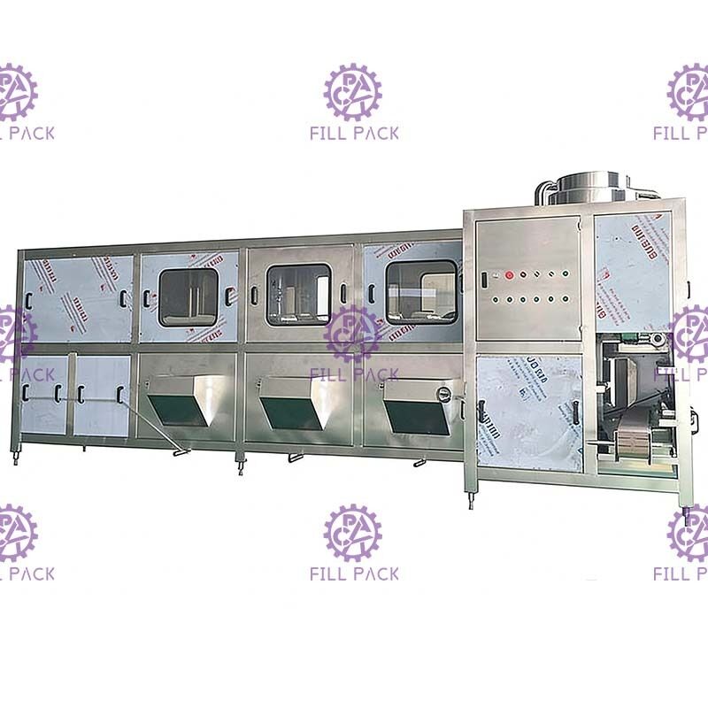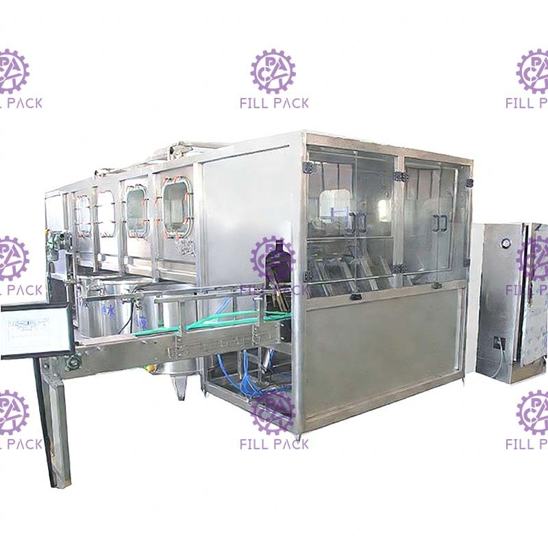 1. Thiết bị chiết rót chai này chủ yếu được sử dụng để rửa, chiết rót và đóng nắp chai PET 5 gallon