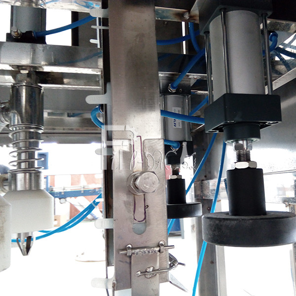 4) Giá trị chiết rót sẽ được điều khiển bằng xi lanh để đưa vào thùng và bắt đầu đổ đầy, thời gian chiết rót được điều khiển bằng PLC và thời gian chiết rót có thể điều chỉnh bằng bảng điều khiển tùy theo bề mặt chất lỏng làm đầy.