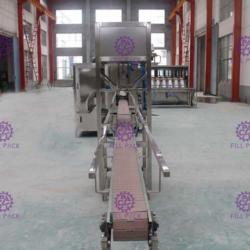 Khi chai gallon vào máy, đầu tháo nắp sẽ đi xuống và thiết bị móng tay sẽ giữ chặt bên nắp thùng, và sau đó nâng thùng để tháo nắp;Và khi cái mũ được tháo ra, không khí máy nén sẽ thổi nắp vào nắp hopper, sau đó rơi ra bên ngoài vào khách hàng của mình;