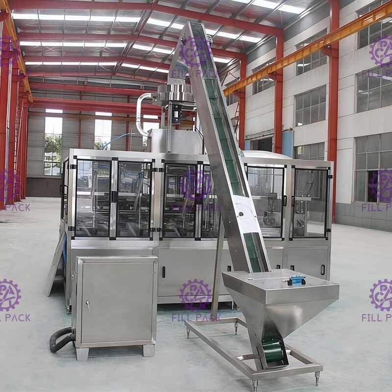 Khi chai gallon vào máy, đầu tháo nắp sẽ đi xuống và thiết bị móng sẽ giữ chặt bên nắp thùng, và sau đó nâng thùng để tháo nắp;Và khi cái mũ được tháo ra, không khí máy nén sẽ thổi nắp vào nắp hopper, sau đó rơi ra bên ngoài vào khách hàng của mình;